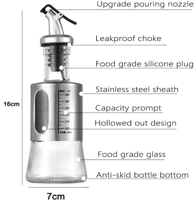Dodajte dašak elegancije i praktičnosti svojoj kuhinji uz bocu za ulje od 200ml sa čeličnim poklopcem i preciznim izlivačem. Savršena za čuvanje i doziranje maslinovog, suncokretovog, biljnog ulja, sirćeta ili sojinog sosa – bez prosipanja i nereda!