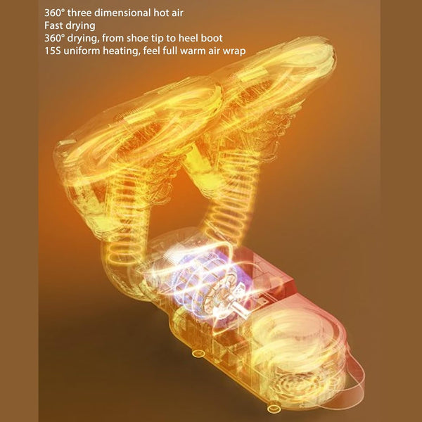 ✅ Brzo i učinkovito sušenje – 360° trodimenzionalni vrući zrak suši obuću za samo 15 minuta, bez oštećenja materijala.