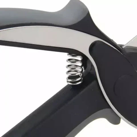 Kuhinjske makaze 3u1 sa sečivom napravljenim od nerđajućeg čelika, sa oprugom za brzo sečenje i mini daskom ispod sečiva. Pranje u sudomašini ne šteti proizvodu.