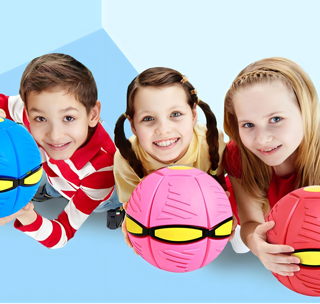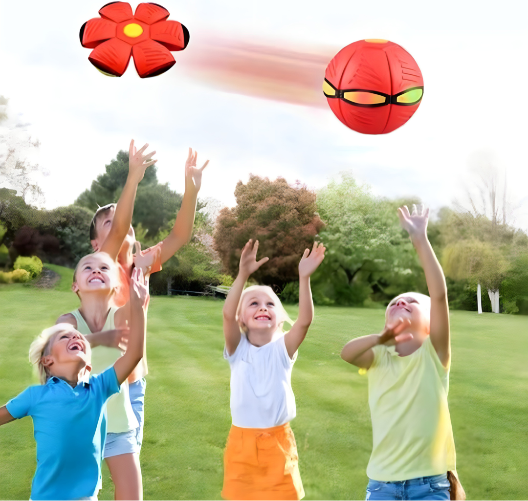 Jednim potezom frizbi se pretvara u lopticu, što ovu igračku čini nepredvidivom i još zabavnijom! Samim tim podstiče decu na kretanje, timsku igru i razvijanje koordinacije.