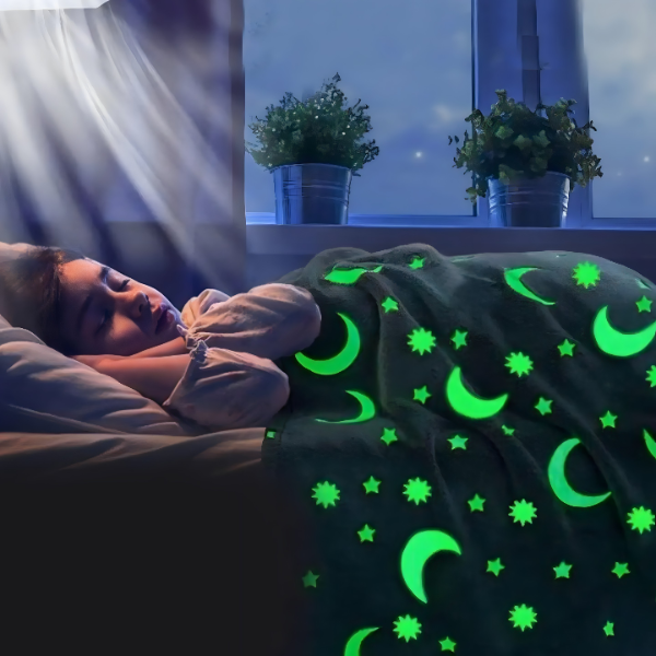 Ovo nije običan pokrivač – njegov jedinstveni svijetleći efekt stvara čaroliju u vašem domu. Magično svijetleće ćebe sija u mraku i donosi poseban ugođaj tokom noći, stvarajući atmosferu savršenu za opuštanje ili zabavu. Jednostavno ga izložite svijetlu tokom dana i gledajte kako svijetli kad se svijetla ugase!