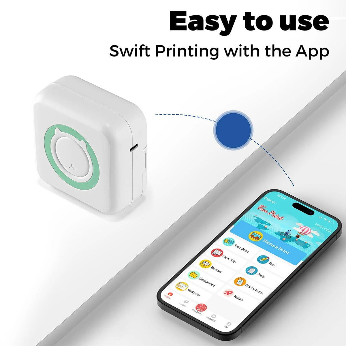 Mini štampač možete nositi svuda sa sobom zahvaljujući kompaktnom dizajnu, a brzo se povezuje sa vašim pametnim telefonom putem aplikacije.