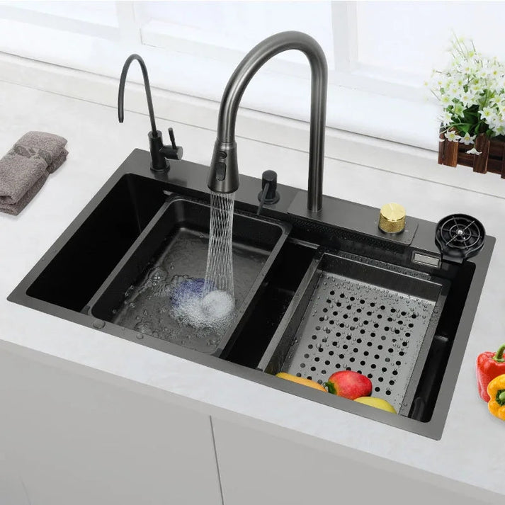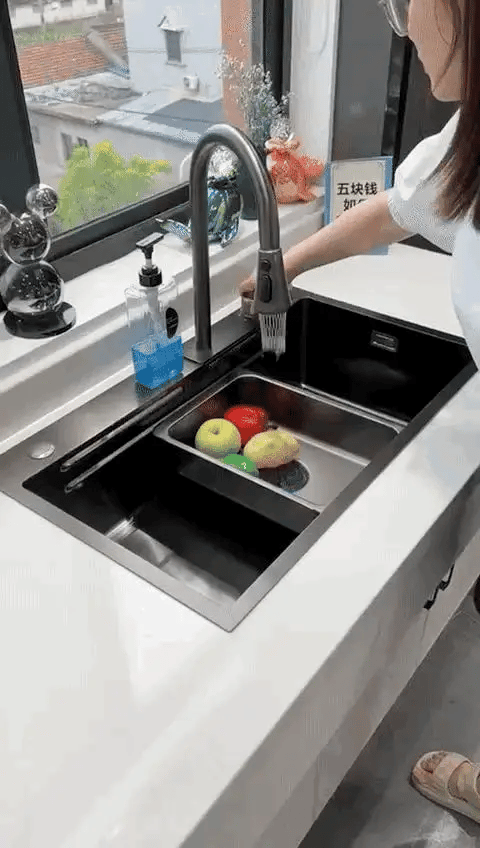Sa ovom multifunkcionalnom sudoperom, dizajniranom da bude praktična, izdržljiva i elegantna! Sa dva odjeljka i dodatnim prostorom za odvod za otpad, omogućava vam da efikasno perete, odvajate i čistite, bez stresa i neredа. Idealna za sve vrste kuhinjskih zadataka – od pranja suđa, povrća, do ispiranja voća ili čak pranja mesa. 🥕🍎🍽️