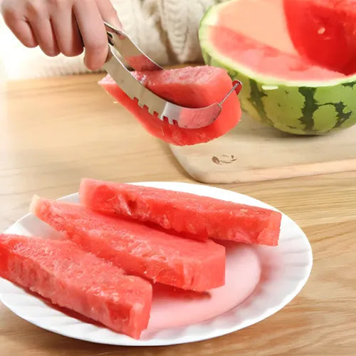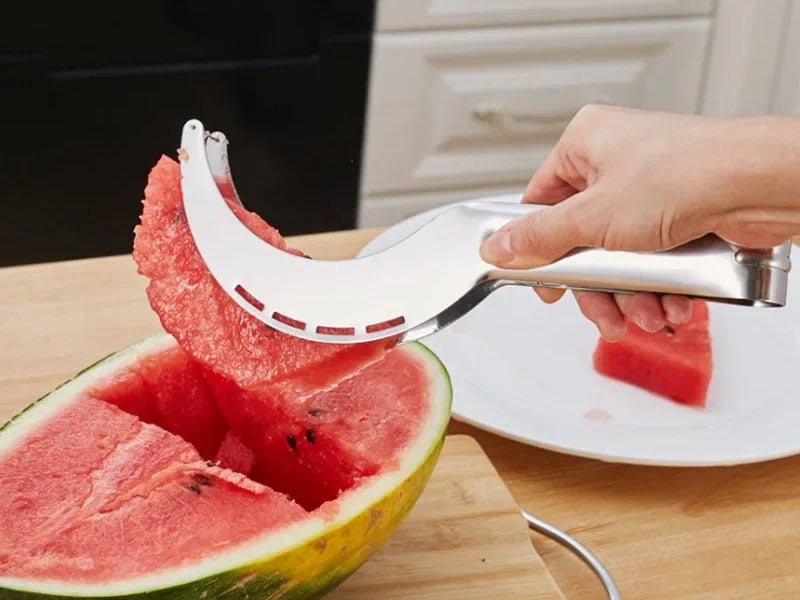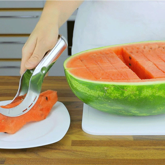Napravljen od nerđajućeg čelika i visokokvalitetne plastike, ovaj jedinstveni kuhinjski alat omogućava lako i bezbjedno sečenje lubenice u ravnomerne kocke, idealne za posluženje ili osvežavajuću užinu. Dovoljno je da alat provučete kroz lubenicu, a sekač automatski pravi savršene kockice.