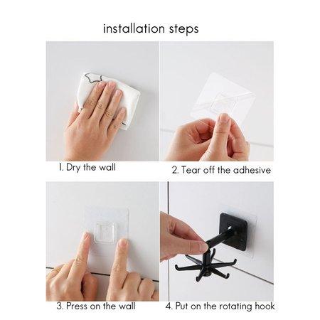 Rotirajuće vješalice dolaze s jednostavnim mehanizmom za montažu. Samo ih pričvrstite na željenu površinu, poput zida, ormara ili kuhinjskih pločica, pomoću priloženih samoljepljivih traka – bez komplikacija!