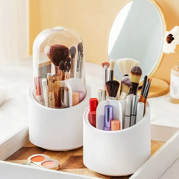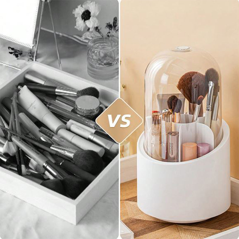 Poseduje providni zaštitni poklopac koji sprečava prodiranje vlage i bakterija do Vaših četkica. Rotirajući ogranizator četkica nudi Vam bezbedno skladištenje Vaših četkica za šminku.