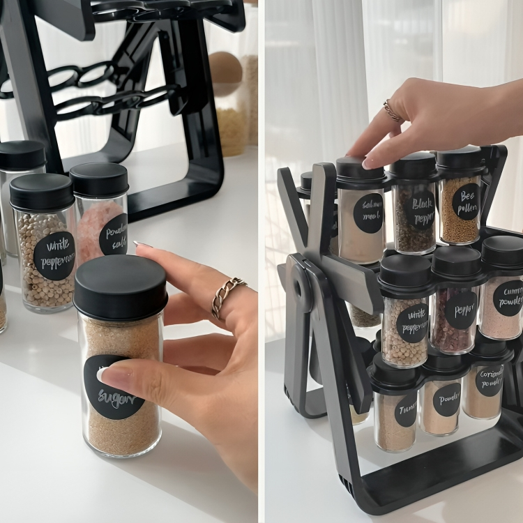 🔄 Rotirajući dizajn: S rotirajućom funkcijom, možete brzo i lako doći do bilo kojeg začina samo jednim okretanjem, što olakšava kuhanje.