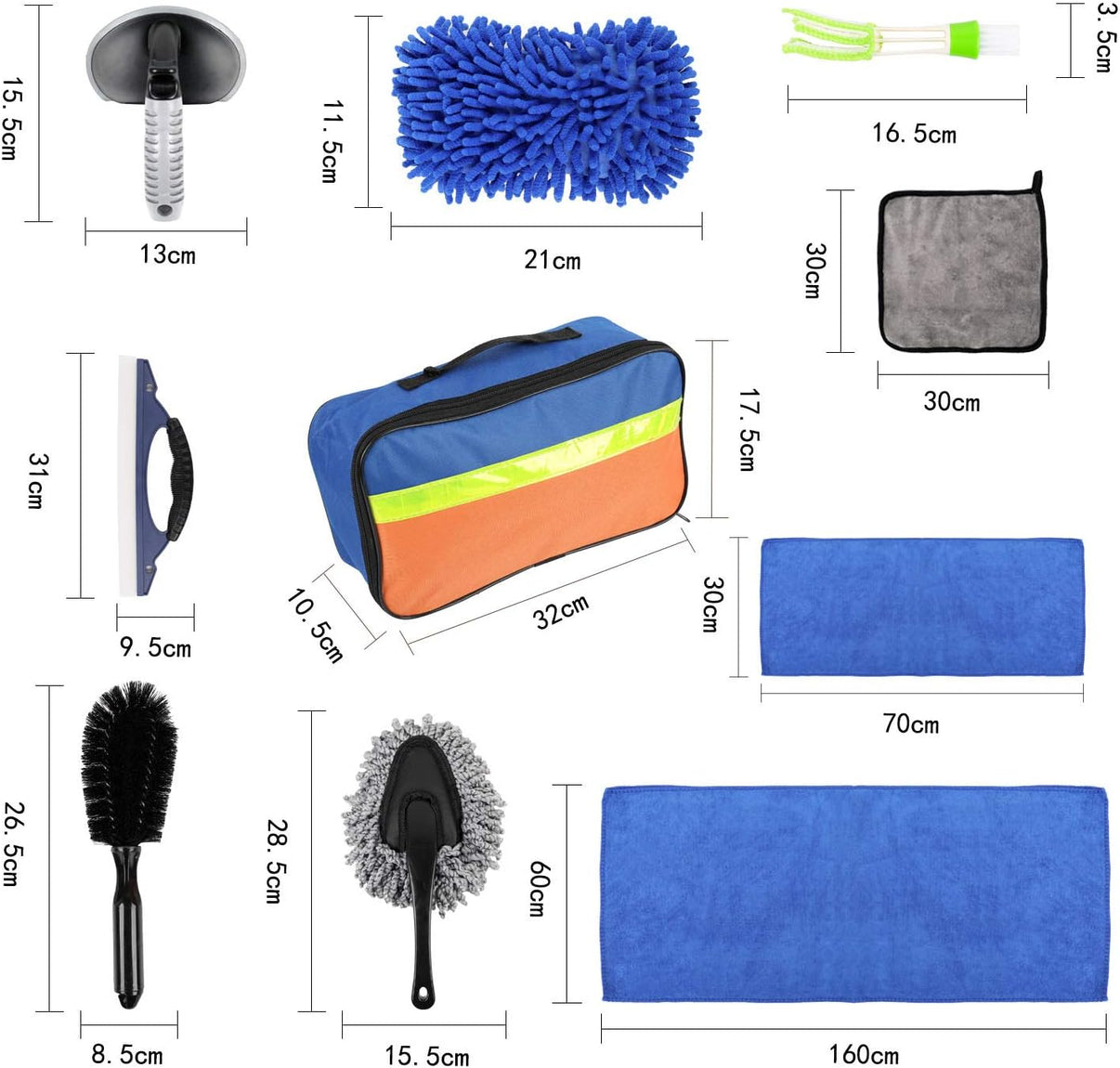 Ovaj set za čišćenje auta savršen je za sve entuzijaste automobila koji žele održavati svoje vozilo besprijekorno čistim i sjajnim. Set uključuje sve potrebne alate kako biste osigurali temeljno čišćenje unutrašnjosti i spolašnjosti vašeg automobila.