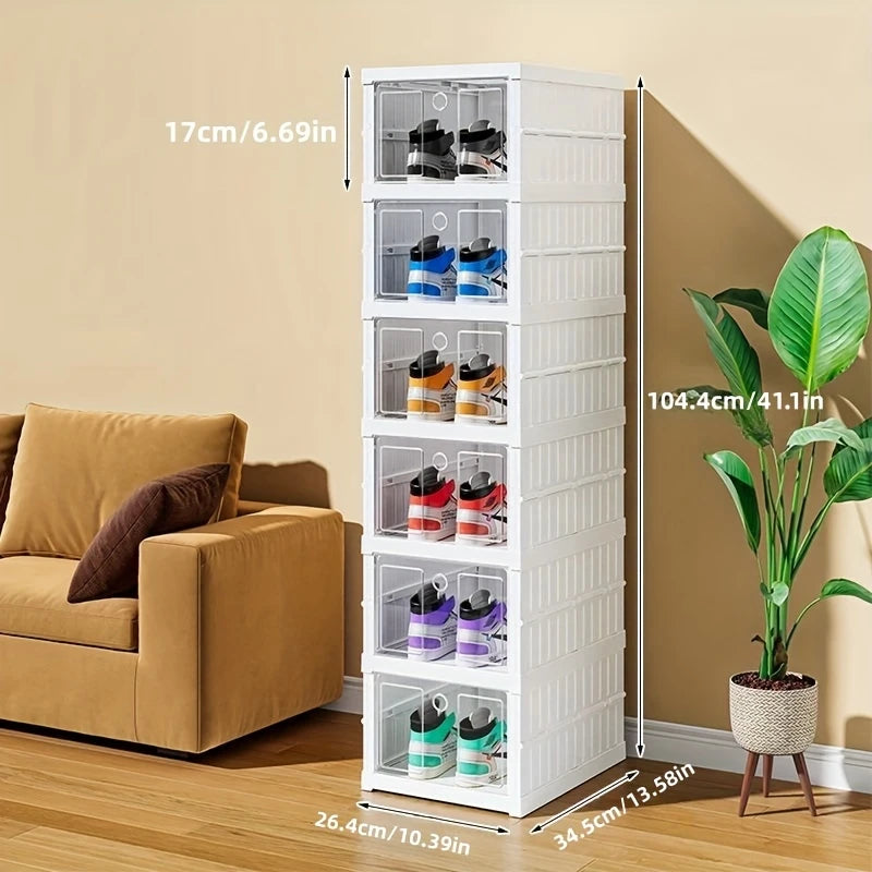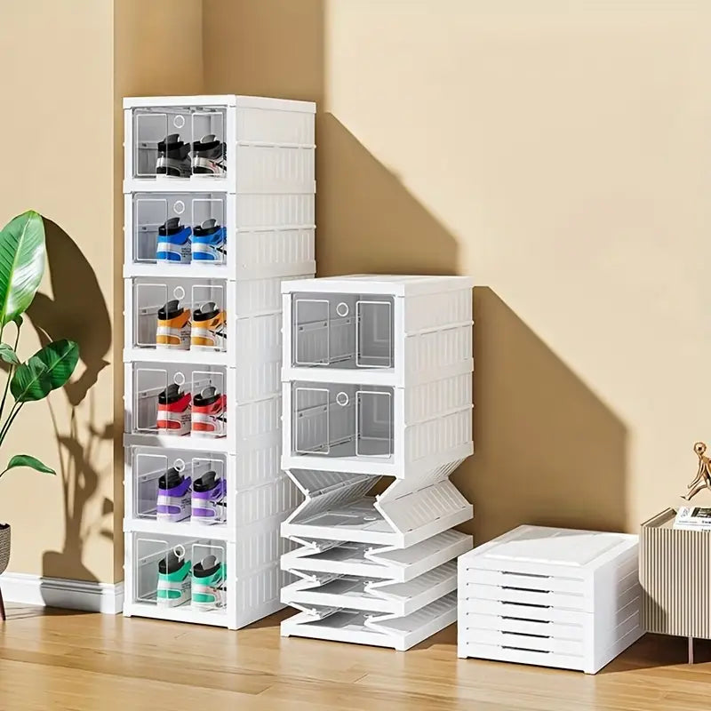 Tražite praktično rješenje za organizaciju obuće? Sklopiva kutija za organizaciju obuće omogućava Vam da uredno posložite svoje cipele, štedeći prostor i olakšavajući pronalazak omiljenog para. Zahvaljujući sklopivom dizajnu bez potrebe za montažom, ovaj modularni organizator savršen je za svaki dom, garderobu ili hodnik. Modernog izgleda i proziranih vrata, idealan je za sve ljubitelje urednosti i praktičnosti!