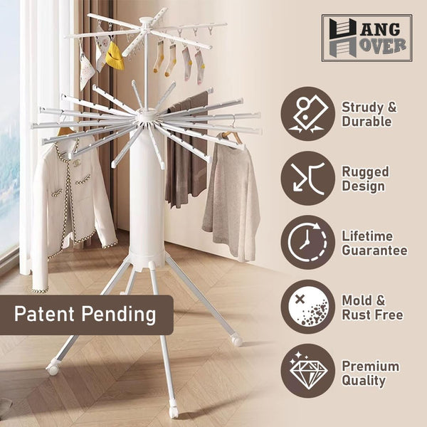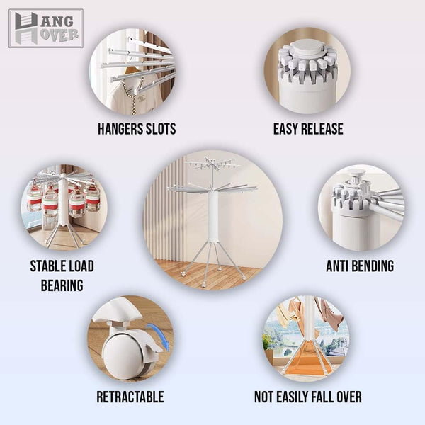 ✅ Izuzetna nosivost i stabilnost – Može držati do 50 kg veša zahvaljujući 16 izdržljivih ruku i stabilnoj tripod strukturi.